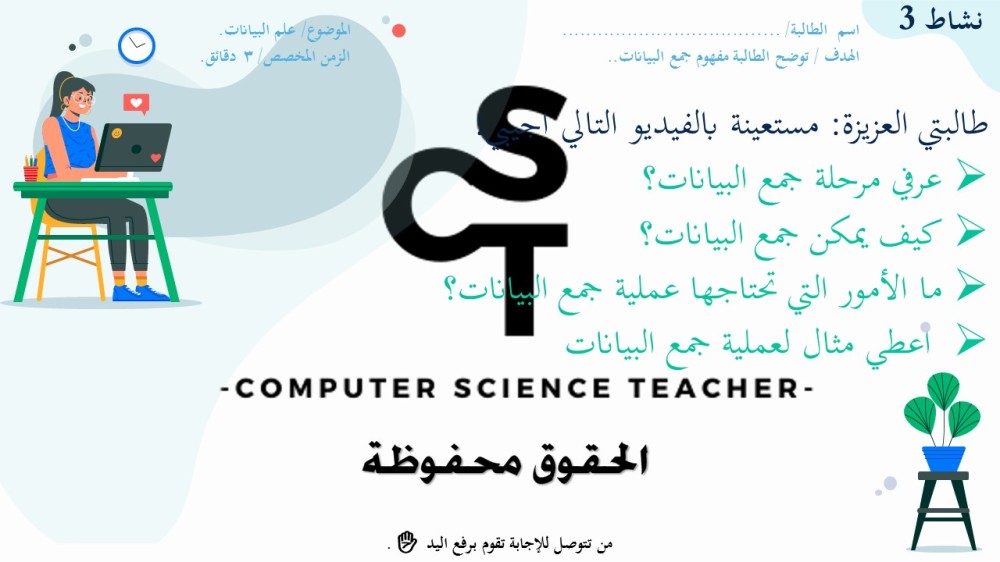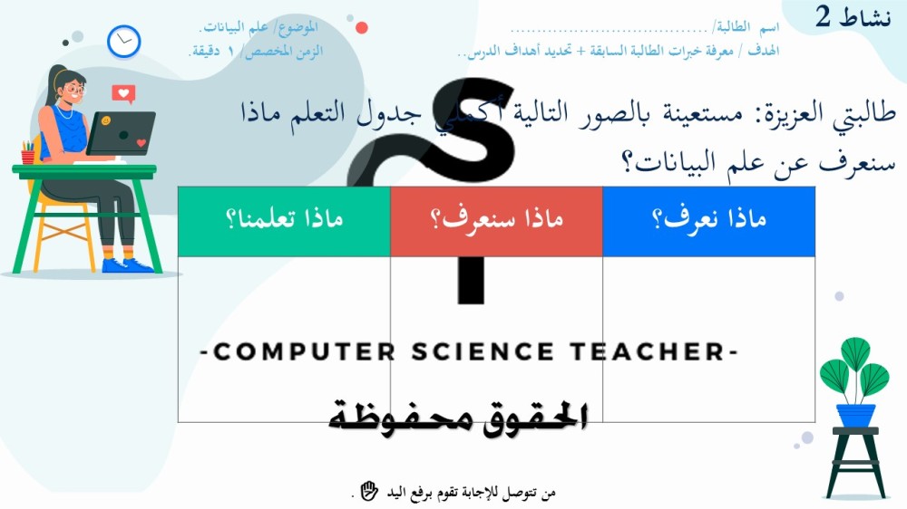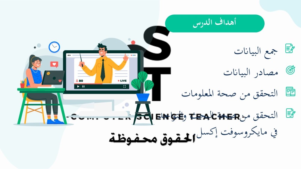 الحقوق محفوظة لحساب معلم علوم الحاسب ولا يحق للعميل نشر رابط العرض ولا تزويد الآخرين به دون دفع قيمة النسخة حتى لا يقع تحت طائلة المساءلة بقية الحقوق مرفقة بالعرض وفي صورة العينات