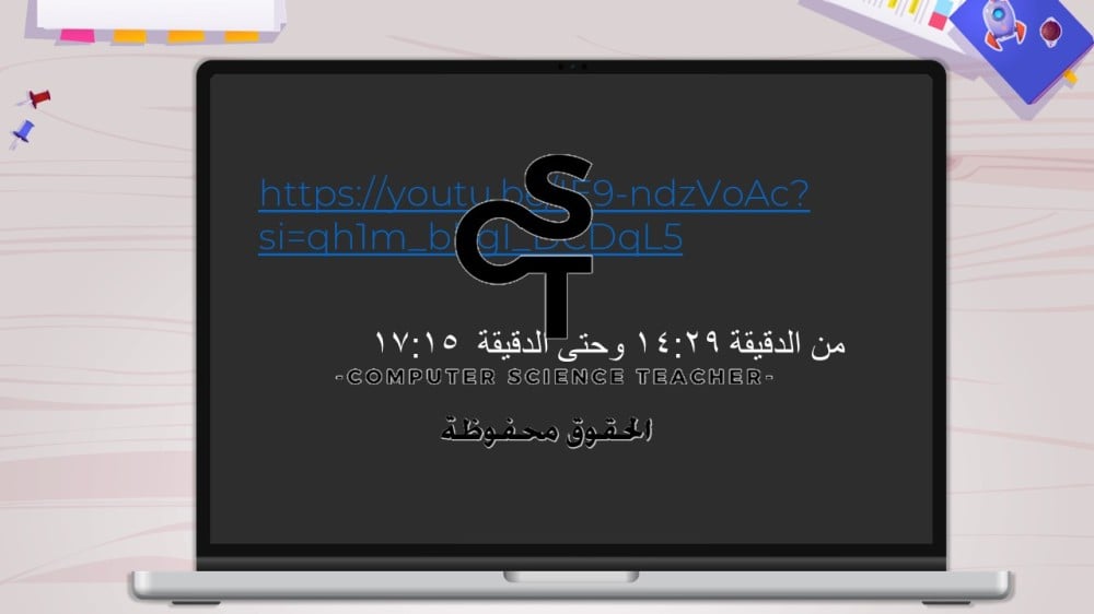 الحقوق محفوظة لحساب معلم علوم الحاسب ولا يحق للعميل نشر رابط العرض ولا تزويد الآخرين به دون دفع قيمة النسخة حتى لا يقع تحت طائلة المساءلة بقية الحقوق مرفقة بالعرض وفي صورة العينات
