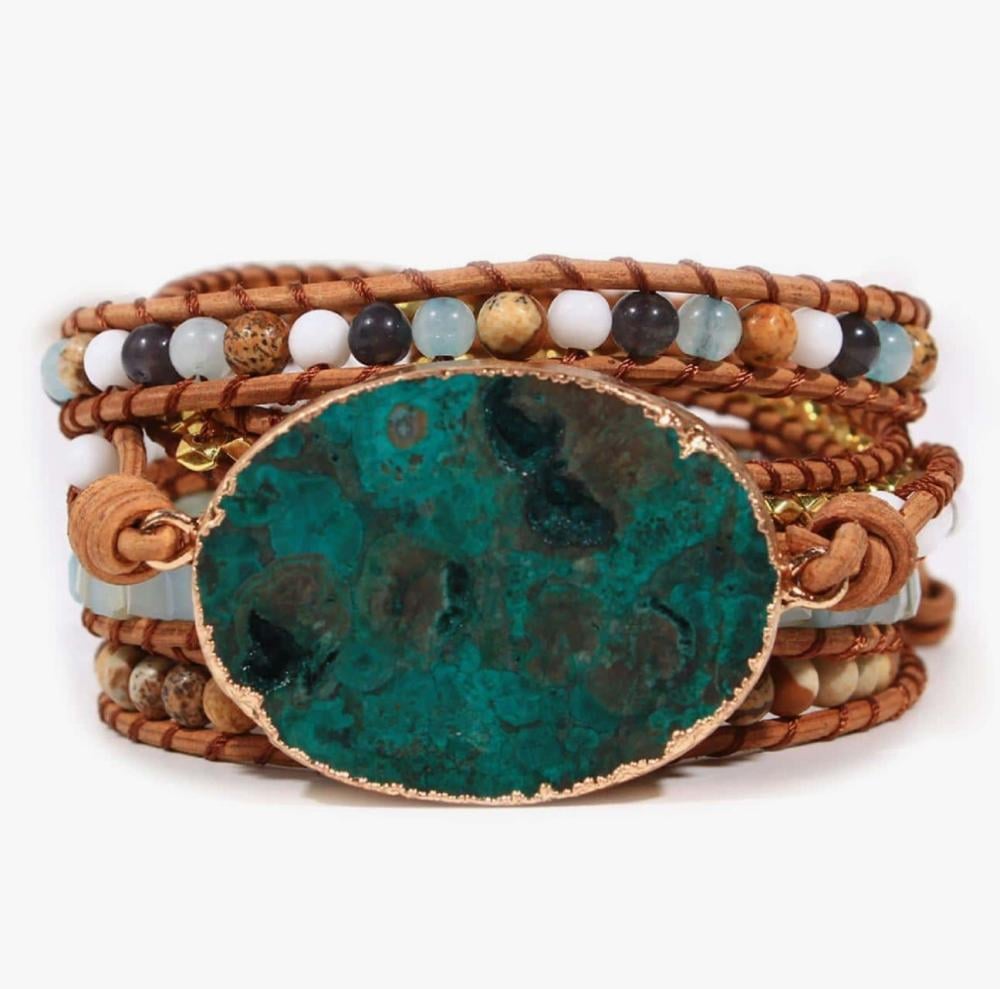 وأحجار متنوعة وفواصل من النحاس اللامع