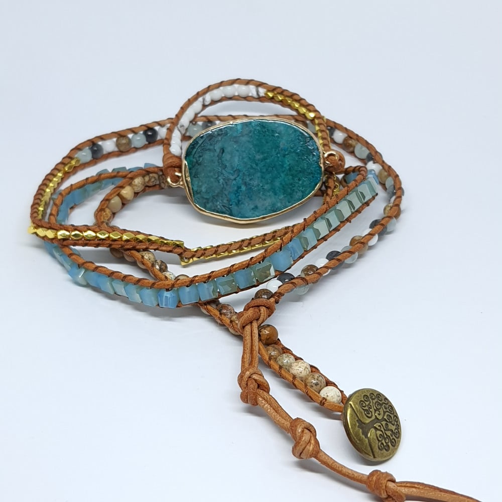 مصنوعة من الاحجاز الطبيعية و الخرز الزجاجي الذي لا يتغير لونه