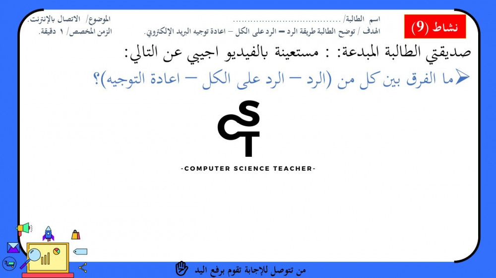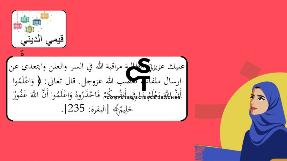 الحقوق محفوظة لحساب معلم علوم الحاسب ولا يحق للعميل نشر رابط العرض ولا تزويد الآخرين به دون دفع قيمة النسخة حتى لا يقع تحت طائلة المساءلة بقية الحقوق مرفقة بالعرض وفي صورة العينات