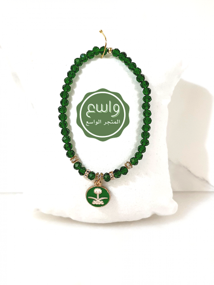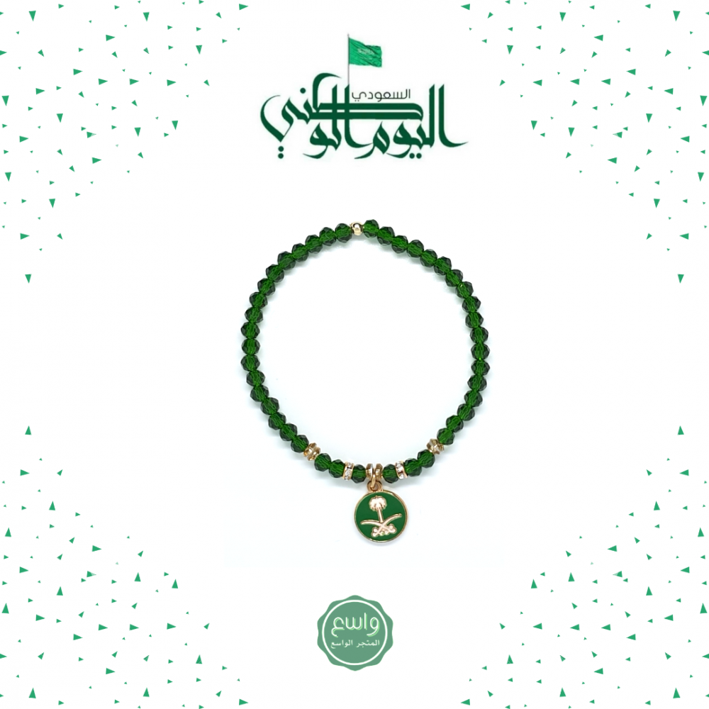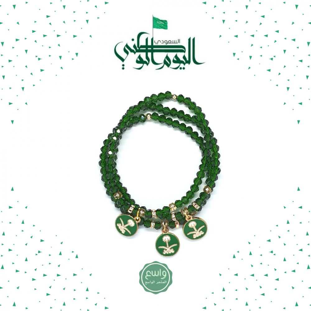 أسورة خضراء اللون من الخرز الزجاجي والفواصل الذهبية