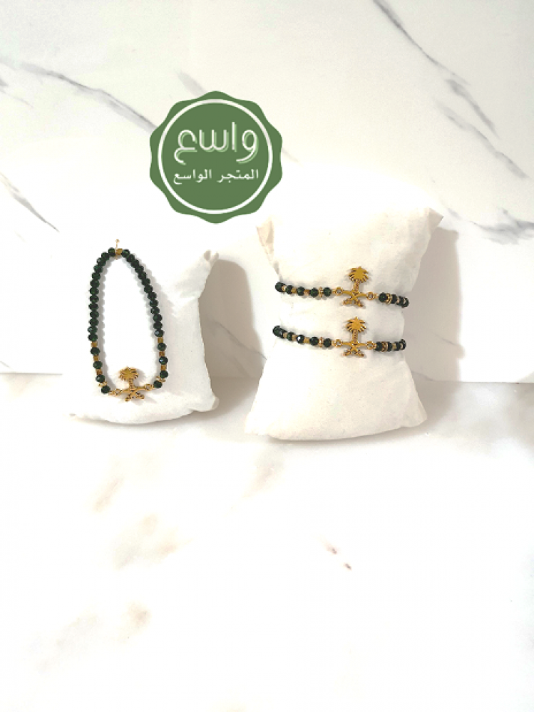 أسورة خضراء اللون من الخرز الزجاجي والفواصل الذهبية