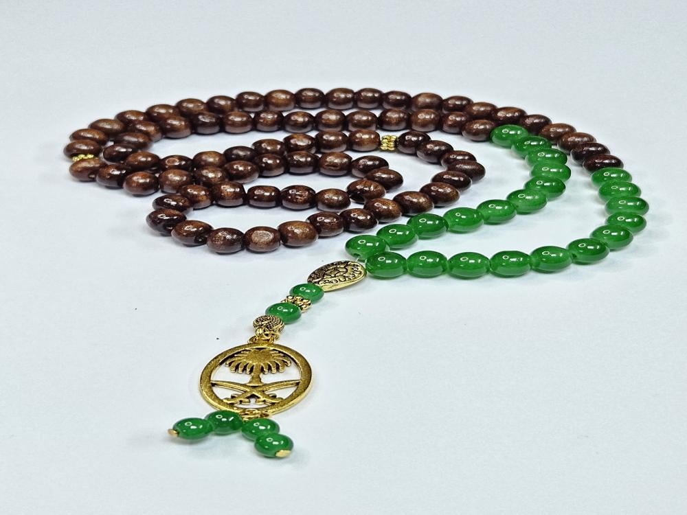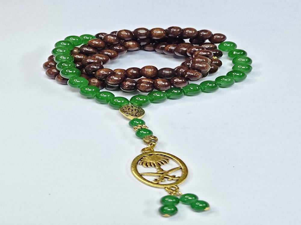 أسورة خضراء اللون من الخرز الزجاجي والفواصل الذهبية