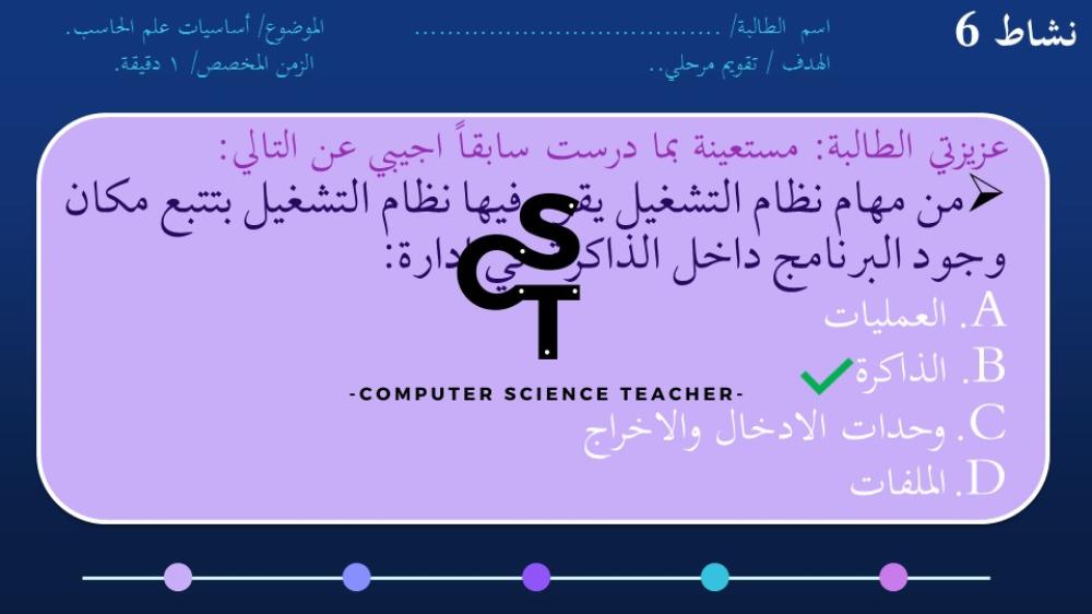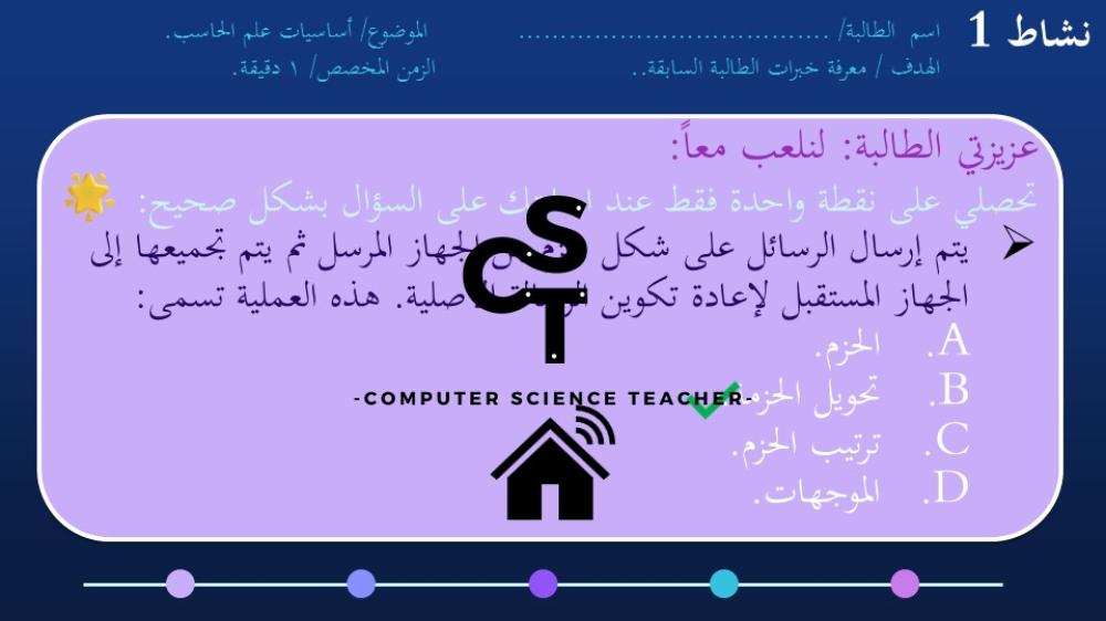 الحقوق محفوظة لحساب معلم علوم الحاسب ولا يحق للعميل نشر رابط العرض ولا تزويد الآخرين به دون دفع قيمة النسخة حتى لا يقع تحت طائلة المساءلة بقية الحقوق مرفقة بالعرض وفي صورة العينات