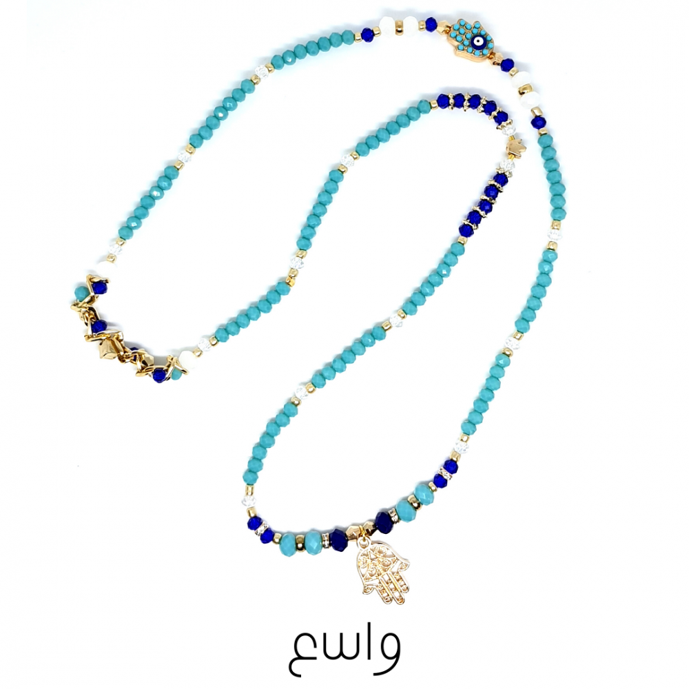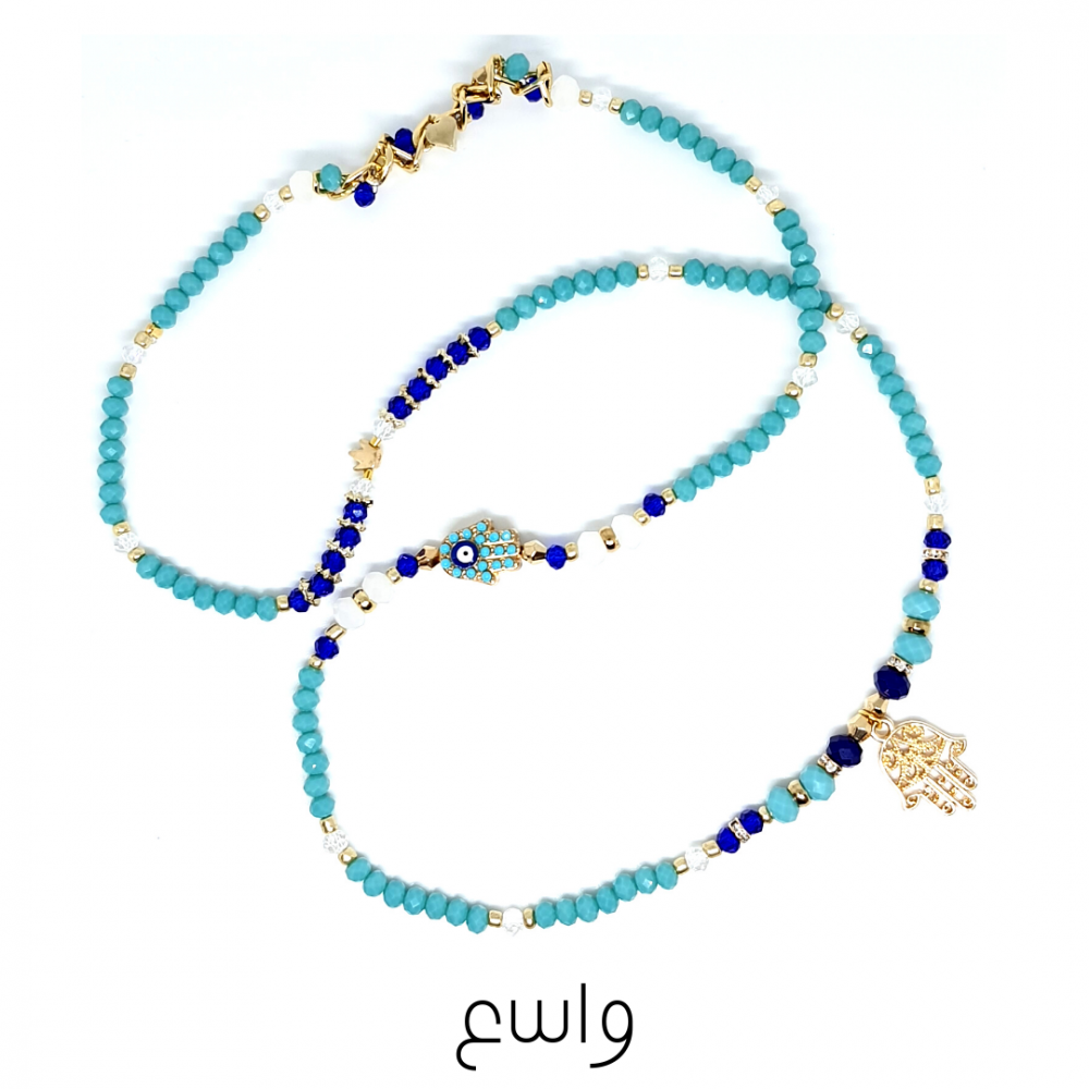 متوفرة بمقاسات متعددة وهي أسورة لف -عقد طويل 4 لفات جميلة من الخرز