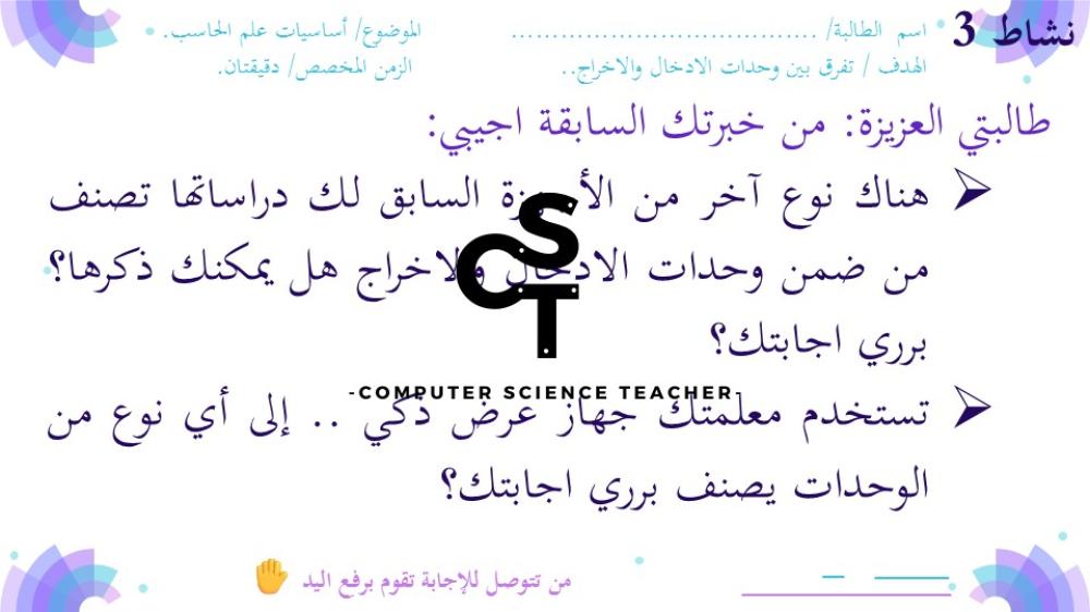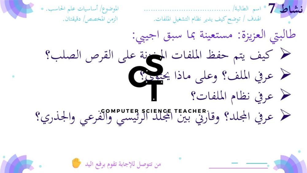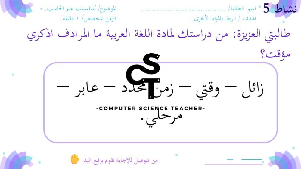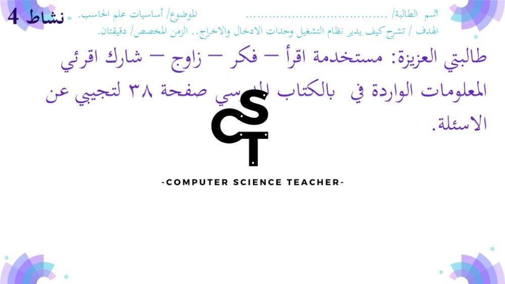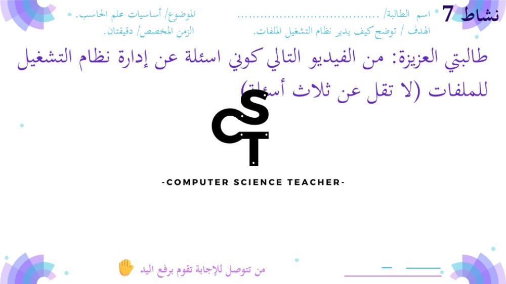 الحقوق محفوظة لحساب معلم علوم الحاسب ولا يحق للعميل نشر رابط العرض ولا تزويد الآخرين به دون دفع قيمة النسخة حتى لا يقع تحت طائلة المساءلة بقية الحقوق مرفقة بالعرض وفي صورة العينات