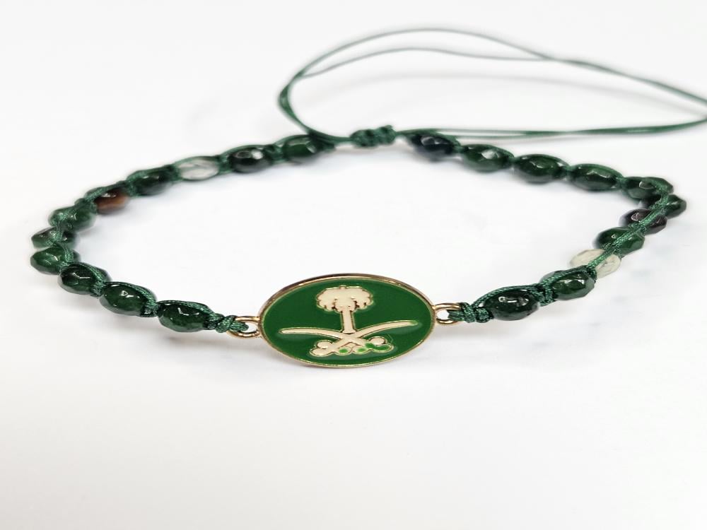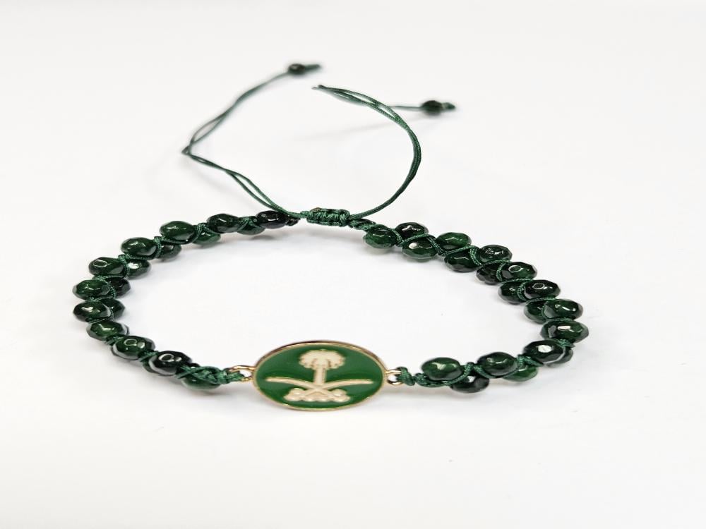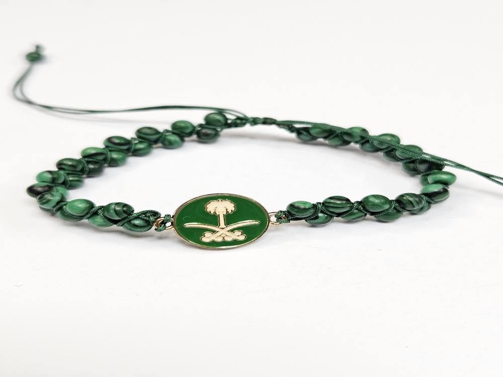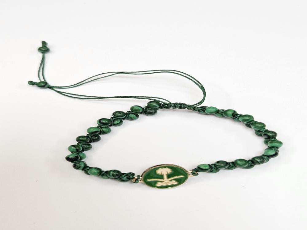 أسورة خضراء اللون من الخرز الزجاجي والفواصل الذهبية