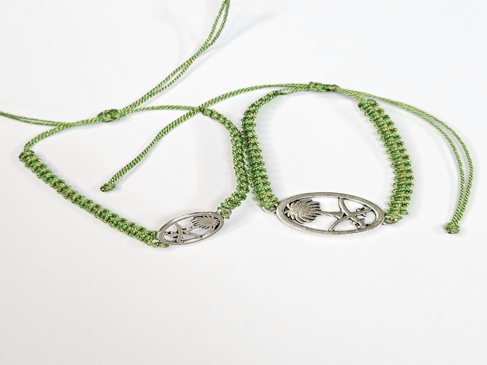 أسورة خضراء اللون من الخرز الزجاجي والفواصل الذهبية