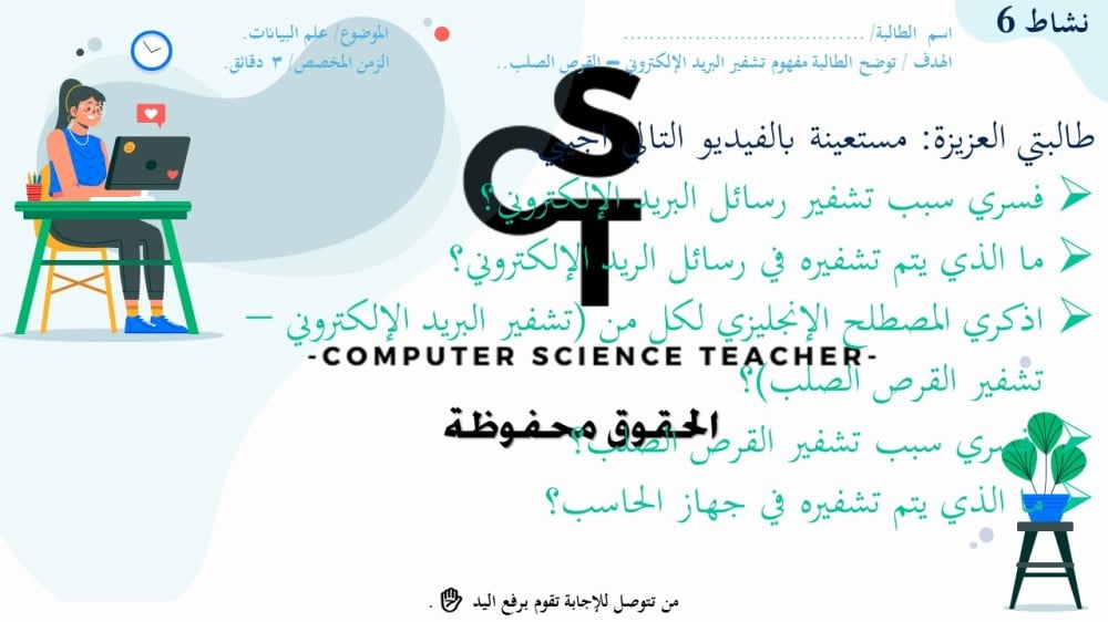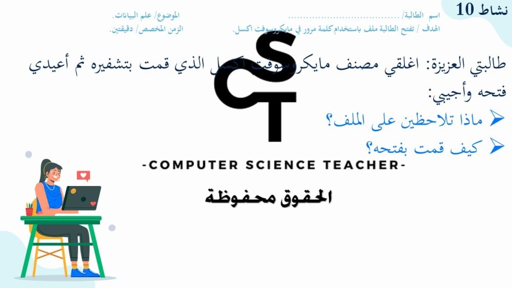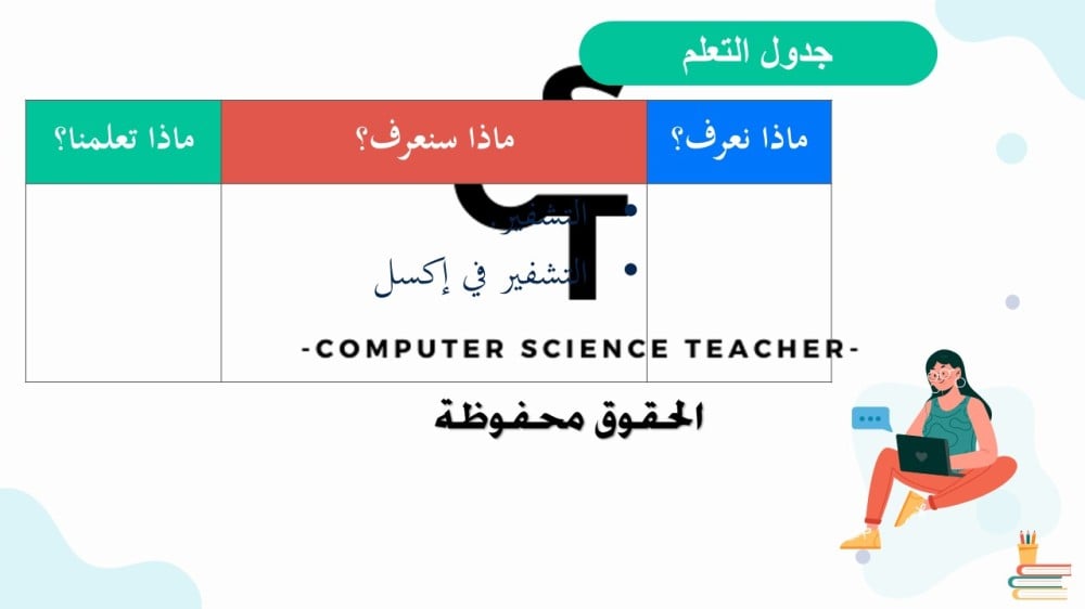الحقوق محفوظة لحساب معلم علوم الحاسب ولا يحق للعميل نشر رابط العرض ولا تزويد الآخرين به دون دفع قيمة النسخة حتى لا يقع تحت طائلة المساءلة بقية الحقوق مرفقة بالعرض وفي صورة العينات