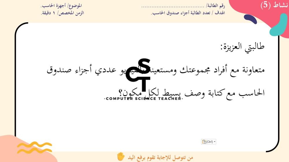 الحقوق محفوظة لحساب معلم علوم الحاسب ولا يحق للعميل نشر رابط العرض ولا تزويد الآخرين به دون دفع قيمة النسخة حتى لا يقع تحت طائلة المساءلة بقية الحقوق مرفقة بالعرض وفي صورة العينات