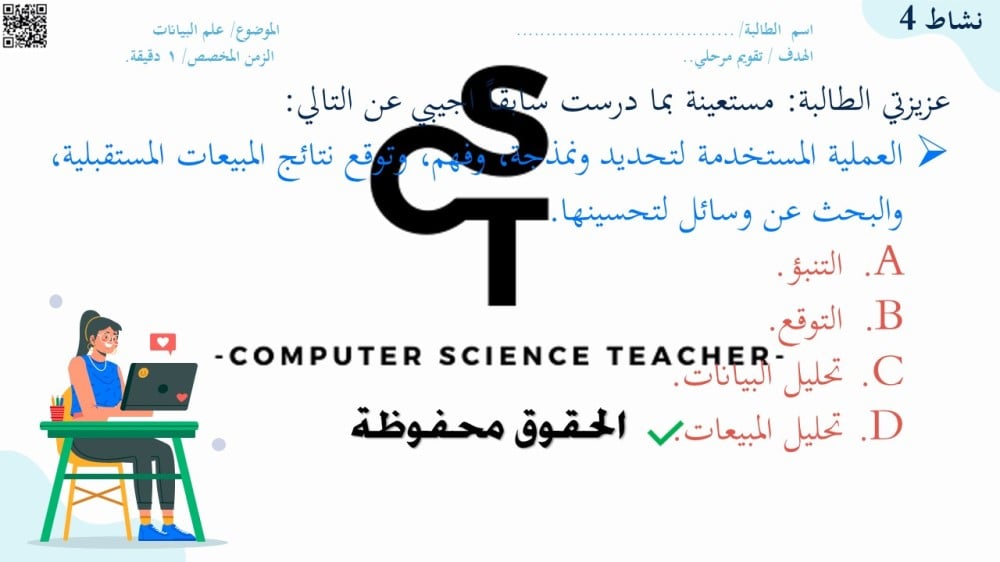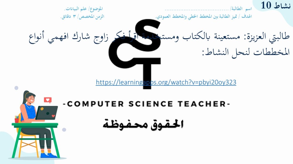 الحقوق محفوظة لحساب معلم علوم الحاسب ولا يحق للعميل نشر رابط العرض ولا تزويد الآخرين به دون دفع قيمة النسخة حتى لا يقع تحت طائلة المساءلة بقية الحقوق مرفقة بالعرض وفي صورة العينات