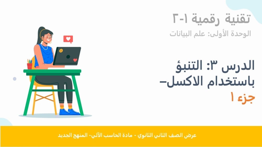 الوحدة الاولى-الدرس الثالث: التنبؤ باستخدام اكسل. الجزء1