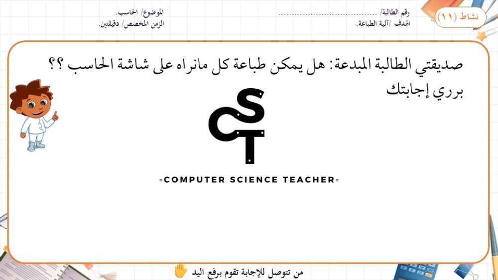 الحقوق محفوظة لحساب معلم علوم الحاسب ولا يحق للعميل نشر رابط العرض ولا تزويد الآخرين به دون دفع قيمة النسخة حتى لا يقع تحت طائلة المساءلة بقية الحقوق مرفقة بالعرض وفي صورة العينات