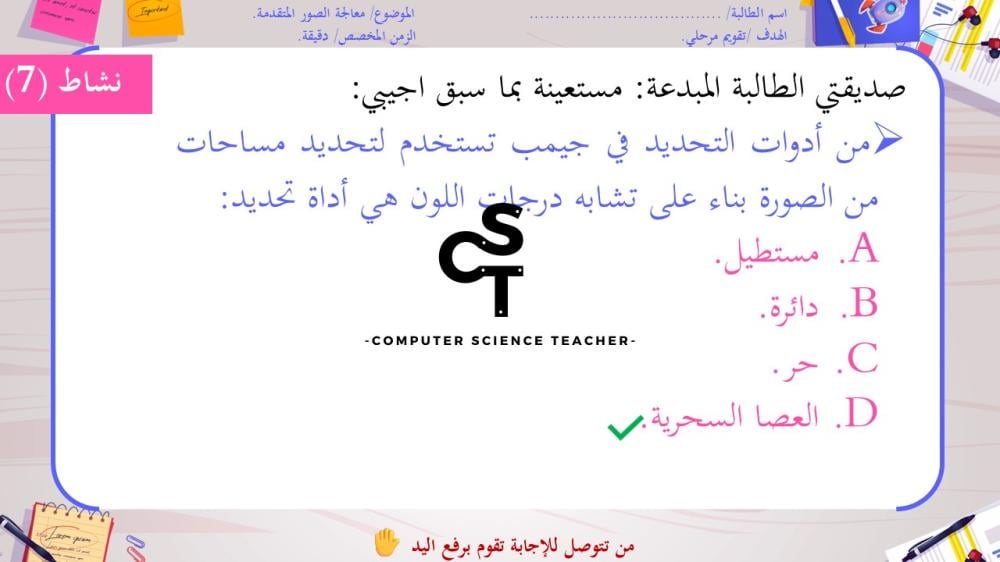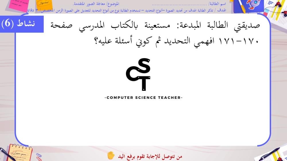الحقوق محفوظة لحساب معلم علوم الحاسب ولا يحق للعميل نشر رابط العرض ولا تزويد الآخرين به دون دفع قيمة النسخة حتى لا يقع تحت طائلة المساءلة بقية الحقوق مرفقة بالعرض وفي صورة العينات