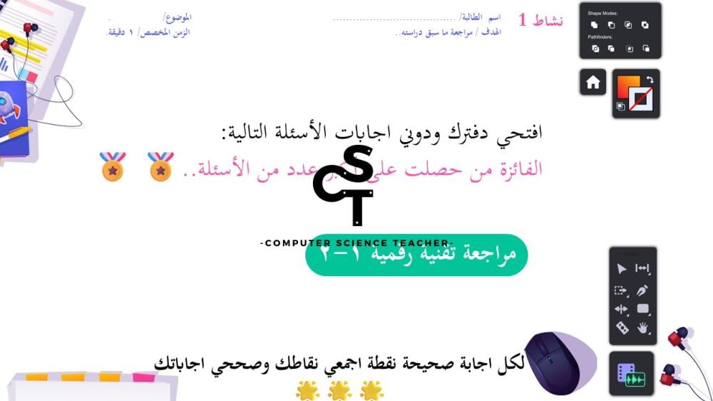 عرض للصف الأول الثانوي -تقنية رقمية 2-1- مادة الحاسب الآلي-المنهج الجديد