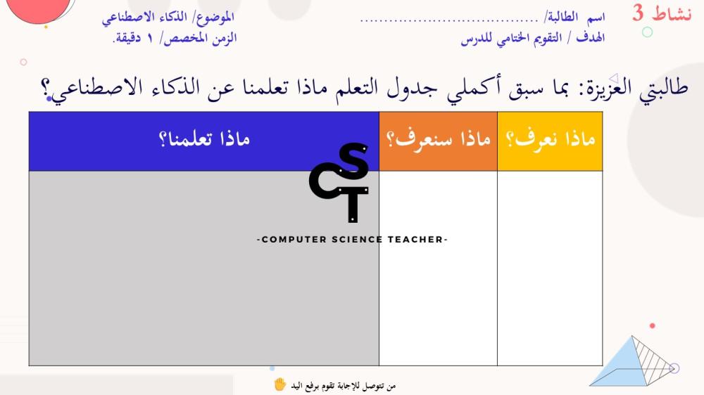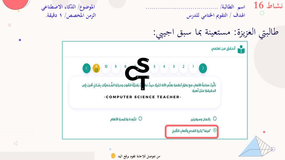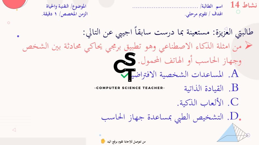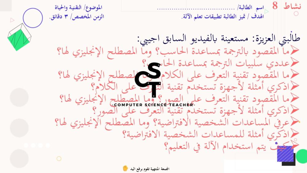 الحقوق محفوظة لحساب معلم علوم الحاسب ولا يحق للعميل نشر رابط العرض ولا تزويد الآخرين به دون دفع قيمة النسخة حتى لا يقع تحت طائلة المساءلة بقية الحقوق مرفقة بالعرض وفي صورة العينات