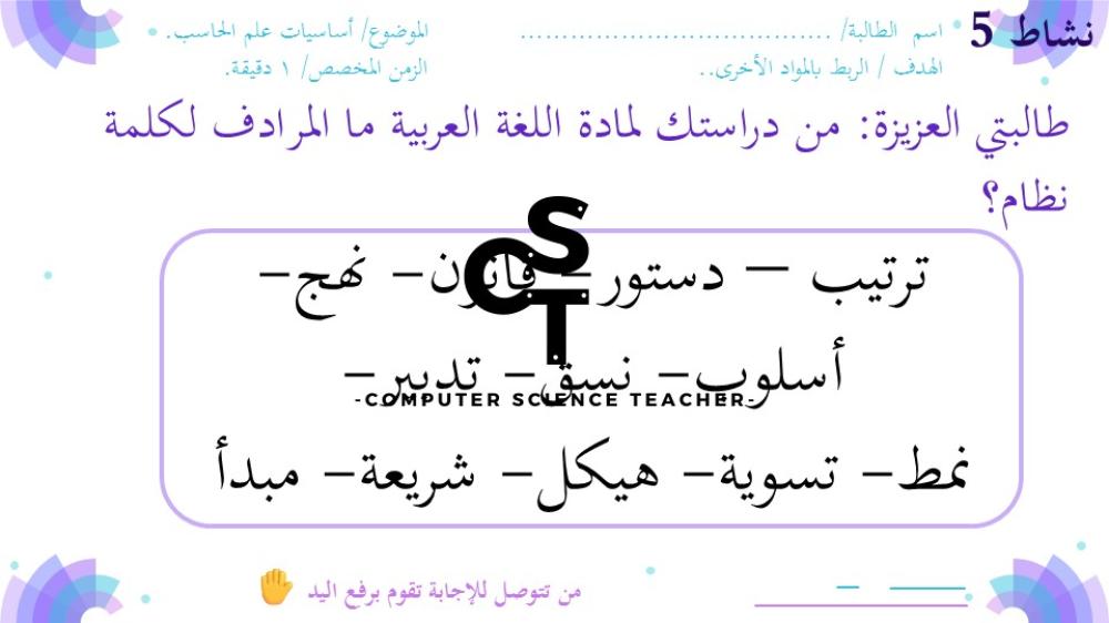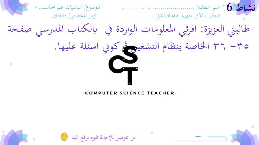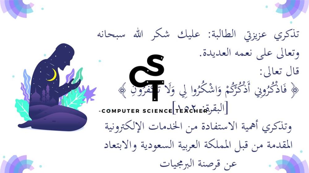 الحقوق محفوظة لحساب معلم علوم الحاسب ولا يحق للعميل نشر رابط العرض ولا تزويد الآخرين به دون دفع قيمة النسخة حتى لا يقع تحت طائلة المساءلة بقية الحقوق مرفقة بالعرض وفي صورة العينات