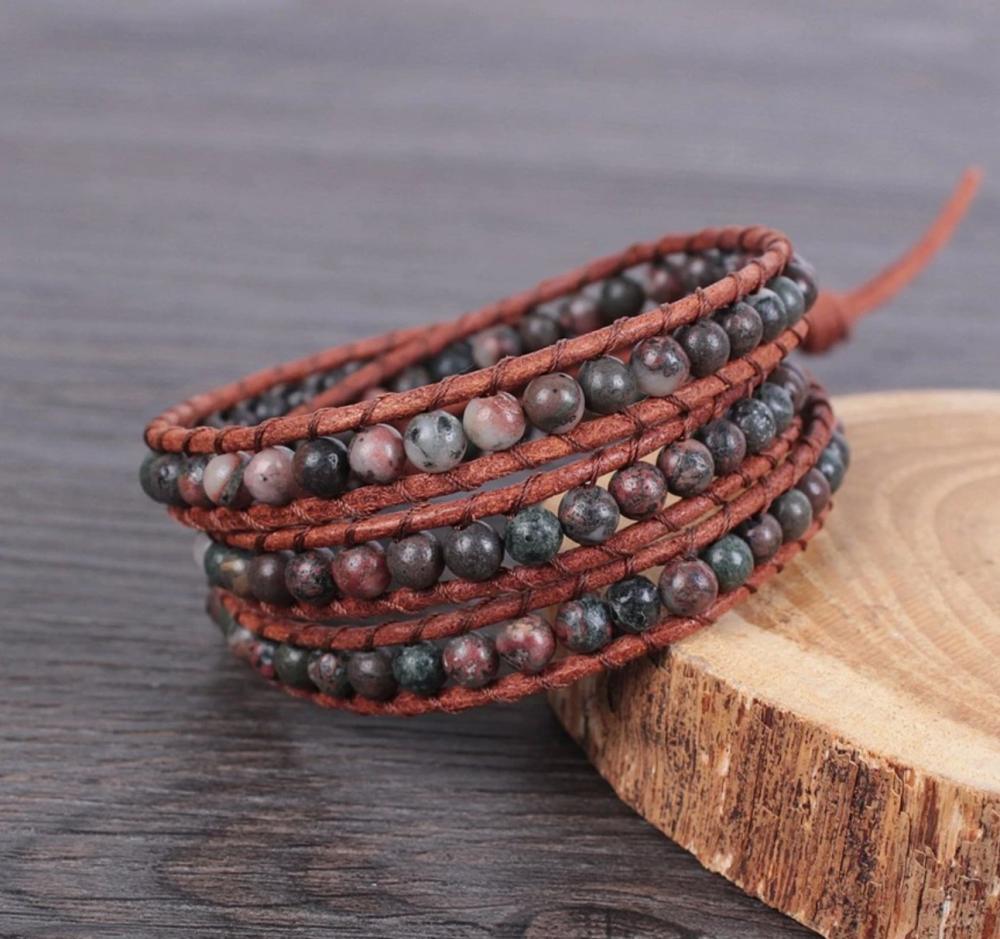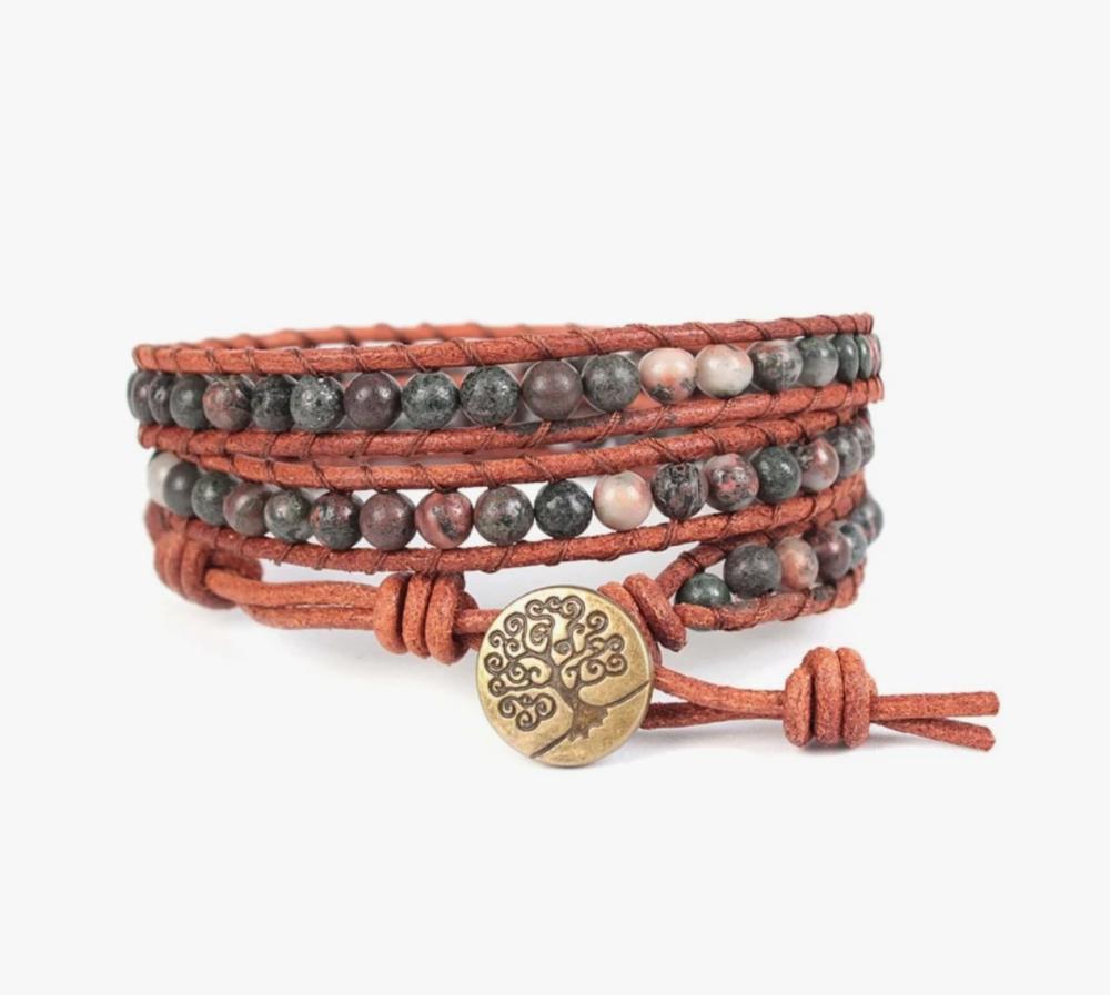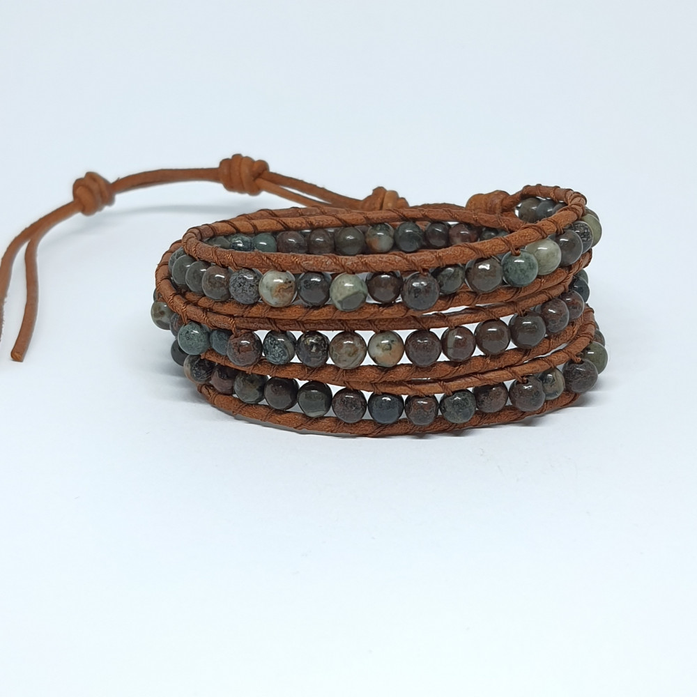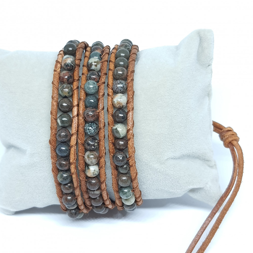 اساور جميلة وأنيقةمصنوعة من الاحجاز الطبيعيةلون بني رماديقد يختلف لون الجلد البقري من بني غامق إلى بني فاتح