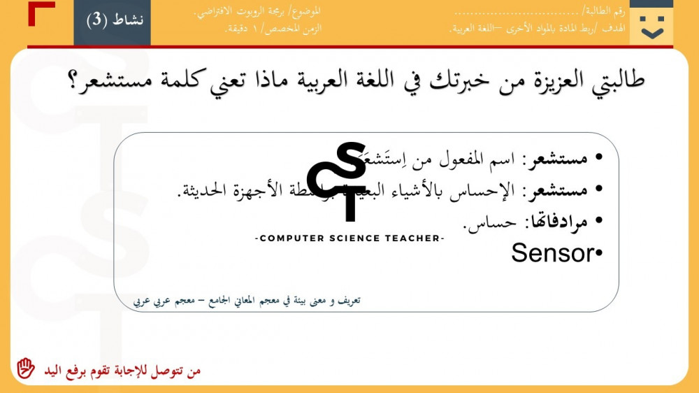 الحقوق محفوظة لحساب معلم علوم الحاسب ولا يحق للعميل نشر رابط العرض ولا تزويد الآخرين به دون دفع قيمة النسخة حتى لا يقع تحت طائلة المساءلة بقية الحقوق مرفقة بالعرض وفي صورة العينات