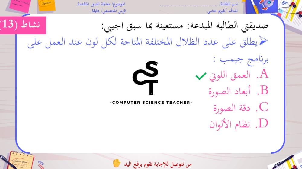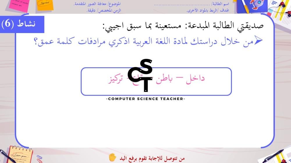 الحقوق محفوظة لحساب معلم علوم الحاسب ولا يحق للعميل نشر رابط العرض ولا تزويد الآخرين به دون دفع قيمة النسخة حتى لا يقع تحت طائلة المساءلة بقية الحقوق مرفقة بالعرض وفي صورة العينات