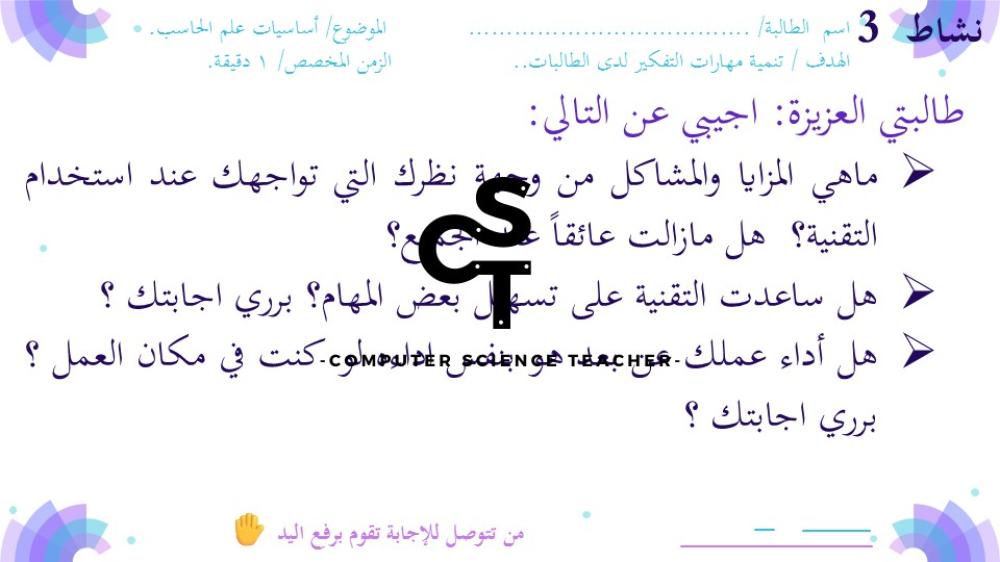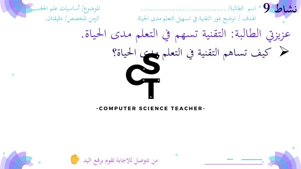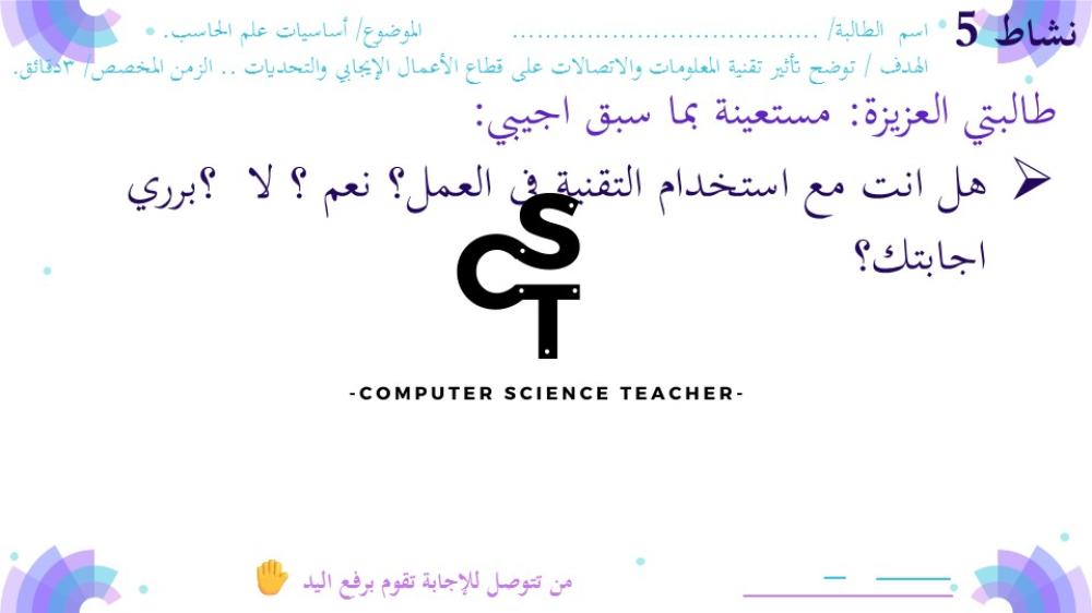 الحقوق محفوظة لحساب معلم علوم الحاسب ولا يحق للعميل نشر رابط العرض ولا تزويد الآخرين به دون دفع قيمة النسخة حتى لا يقع تحت طائلة المساءلة بقية الحقوق مرفقة بالعرض وفي صورة العينات