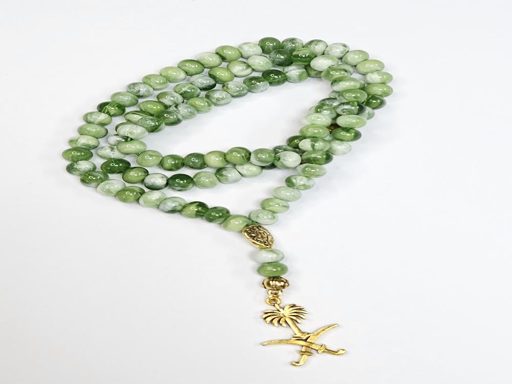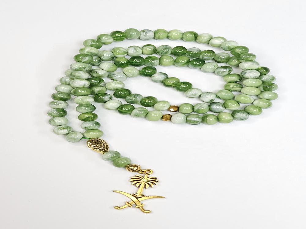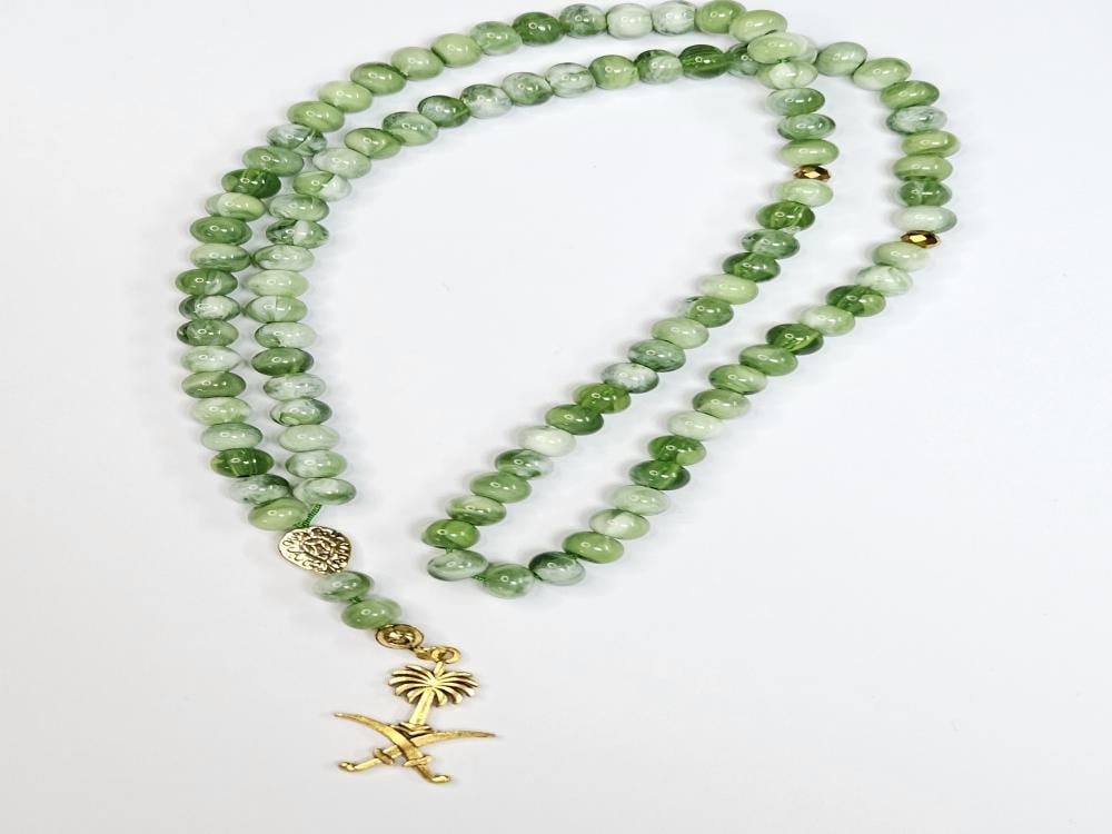 أسورة خضراء اللون من الخرز الزجاجي والفواصل الذهبية