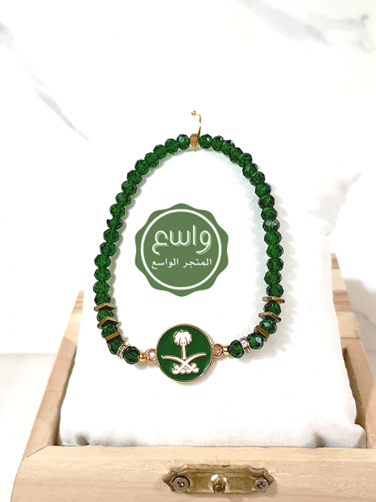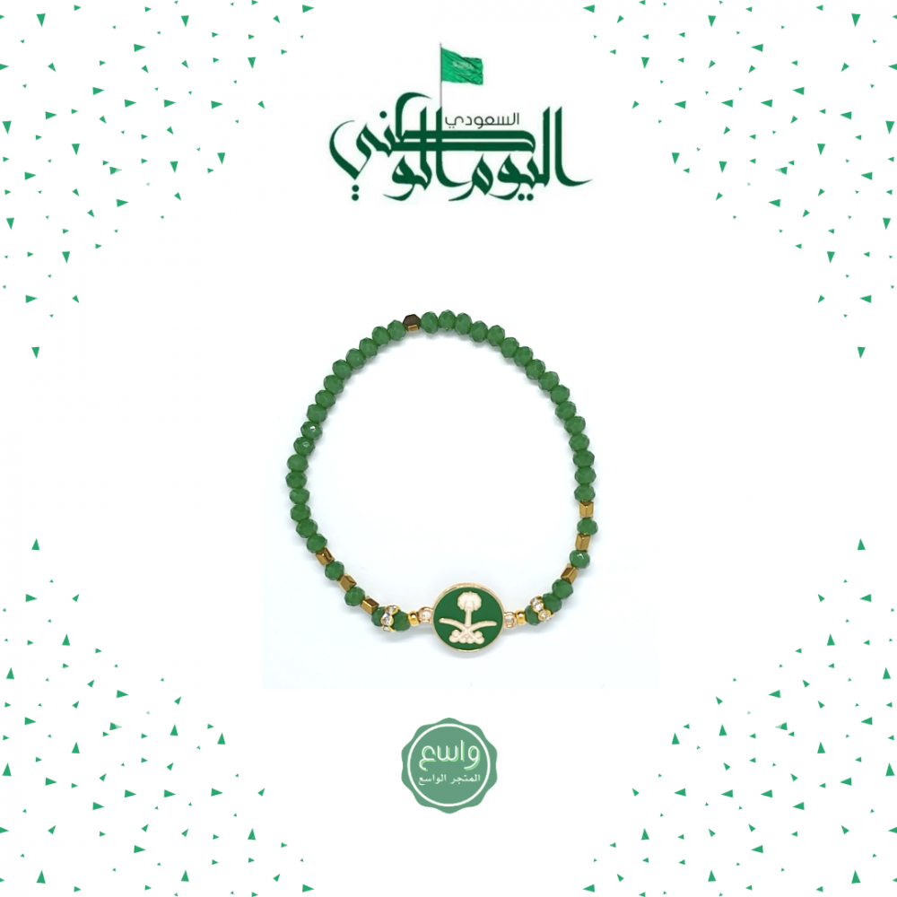 أسورة خضراء اللون من الخرز الزجاجي والفواصل الذهبية