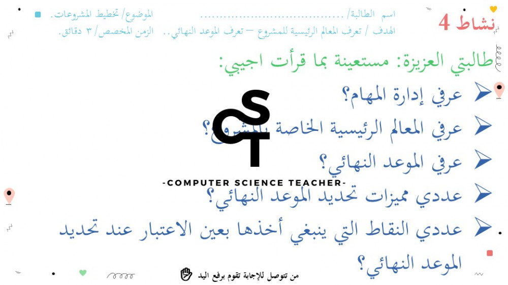 الحقوق محفوظة لحساب معلم علوم الحاسب ولا يحق للعميل نشر رابط العرض ولا تزويد الآخرين به دون دفع قيمة النسخة حتى لا يقع تحت طائلة المساءلة بقية الحقوق مرفقة بالعرض وفي صورة العينات