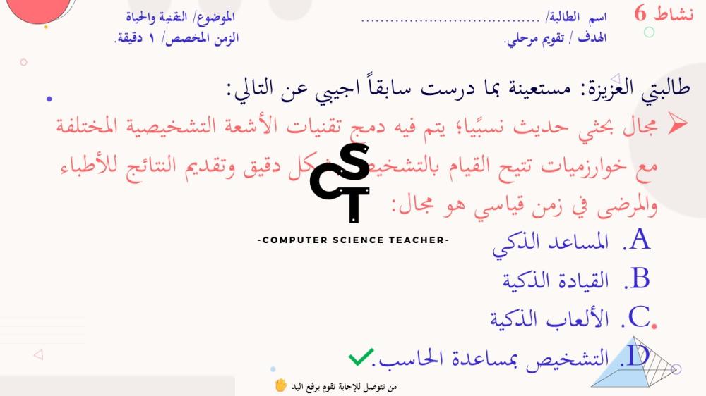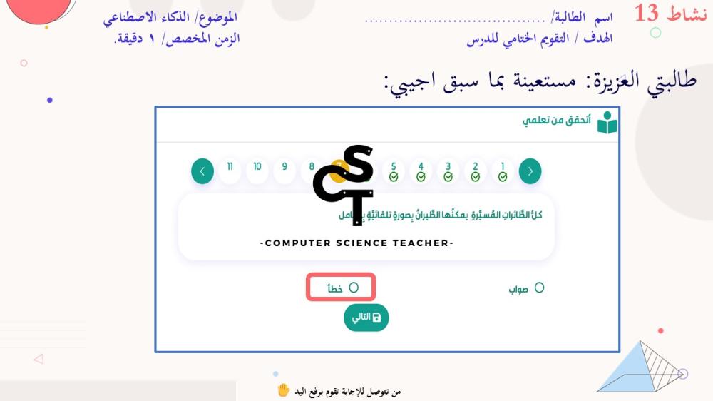الحقوق محفوظة لحساب معلم علوم الحاسب ولا يحق للعميل نشر رابط العرض ولا تزويد الآخرين به دون دفع قيمة النسخة حتى لا يقع تحت طائلة المساءلة بقية الحقوق مرفقة بالعرض وفي صورة العينات