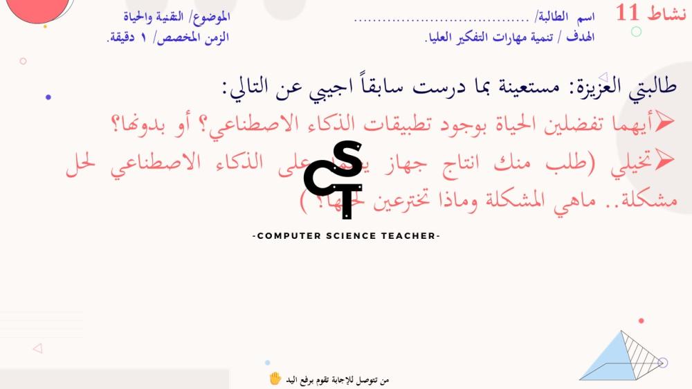الدرس1: الذكاء الاصطناعي- الجزء 2