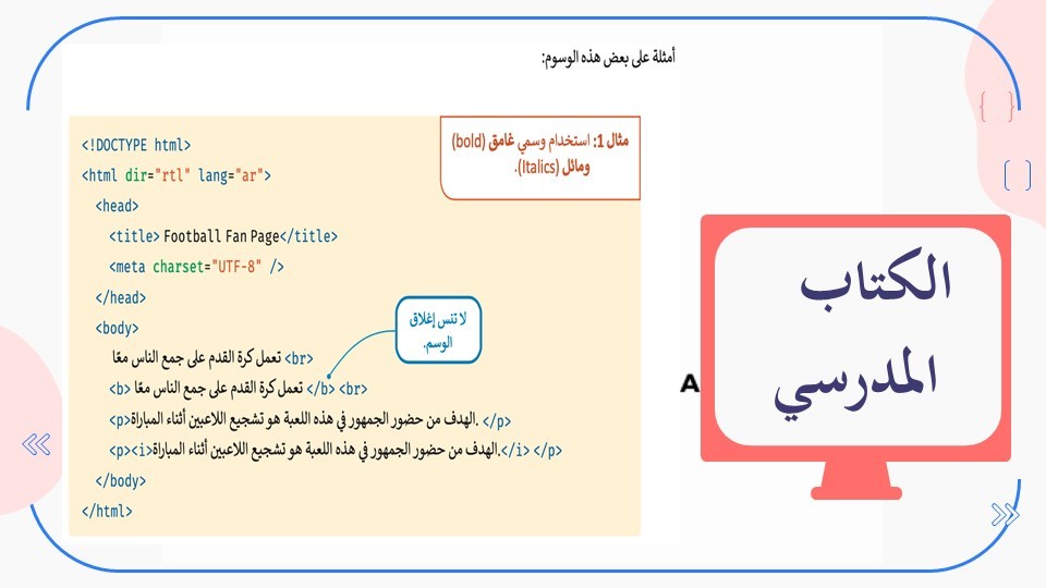 الوحدة الثالثة-الدرس1: التنسيق باستخدام وسوم HTML- الجزء1