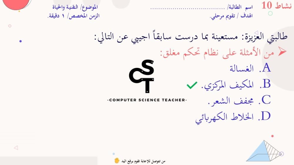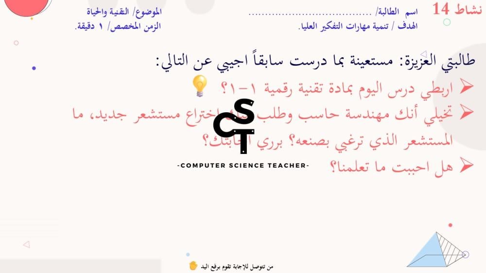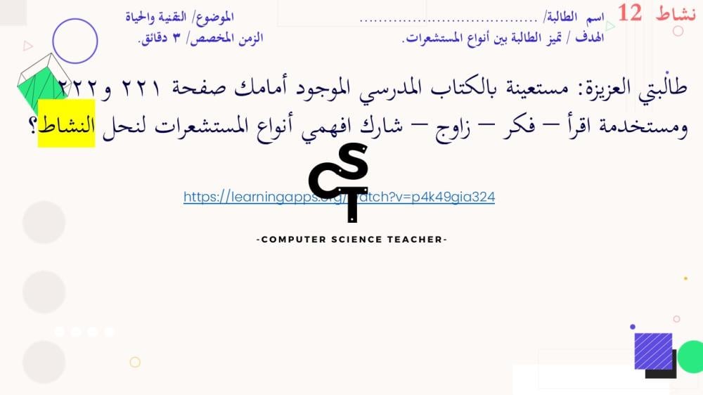 الحقوق محفوظة لحساب معلم علوم الحاسب ولا يحق للعميل نشر رابط العرض ولا تزويد الآخرين به دون دفع قيمة النسخة حتى لا يقع تحت طائلة المساءلة بقية الحقوق مرفقة بالعرض وفي صورة العينات