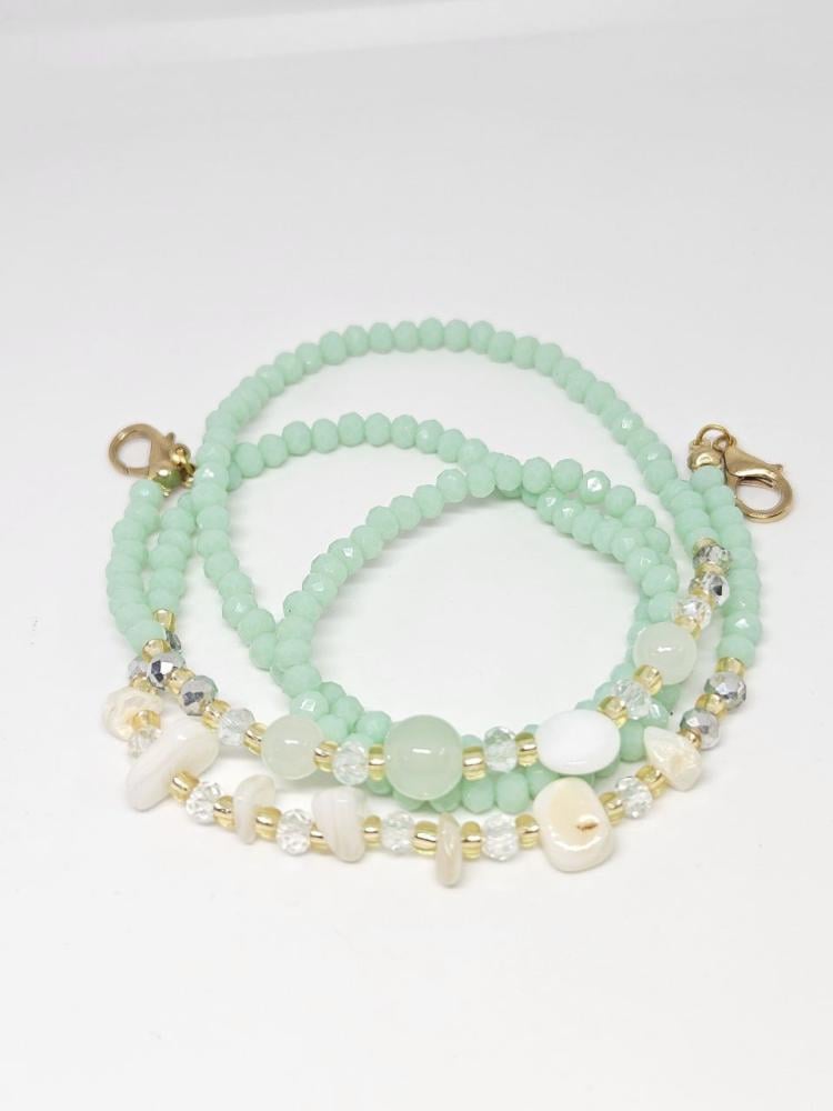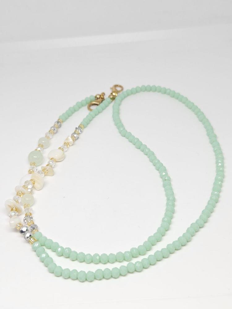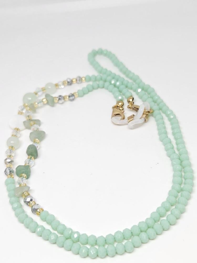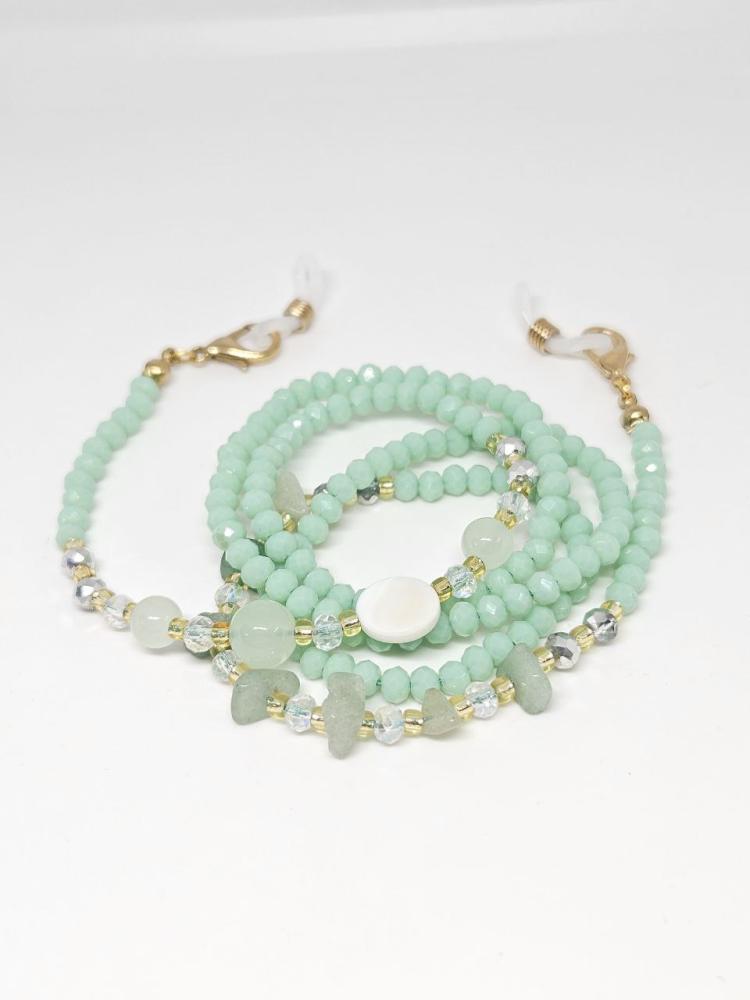 تعليقات للنظاراتمصنوعة من الخرز الزجاجي الذي لا يتغير لونهوالفواصل اللامعة من النحاس المميزوالاحجار من الصدف الطبيعي