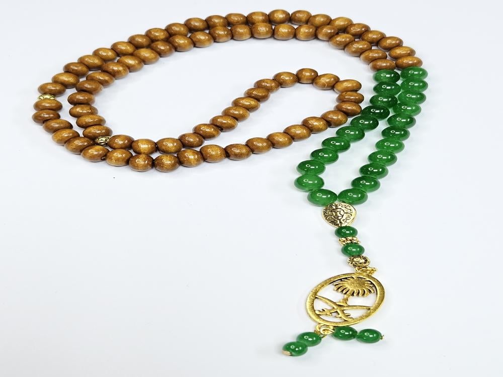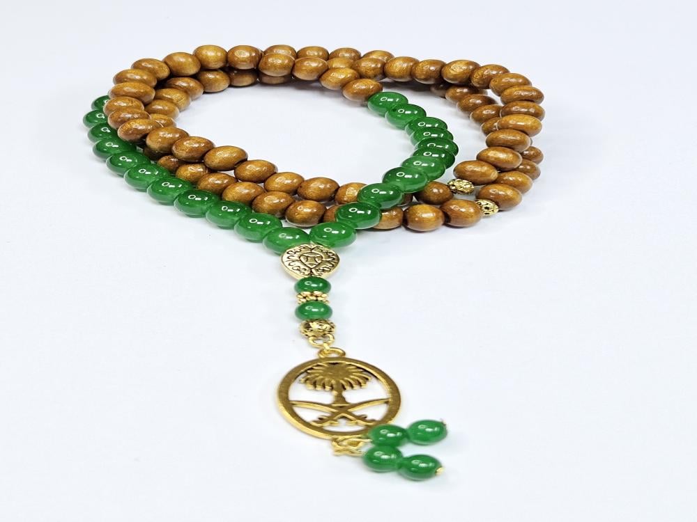 أسورة خضراء اللون من الخرز الزجاجي والفواصل الذهبية