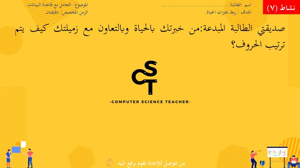 الحقوق محفوظة لحساب معلم علوم الحاسب ولا يحق للعميل نشر رابط العرض ولا تزويد الآخرين به دون دفع قيمة النسخة حتى لا يقع تحت طائلة المساءلة بقية الحقوق مرفقة بالعرض وفي صورة العينات
