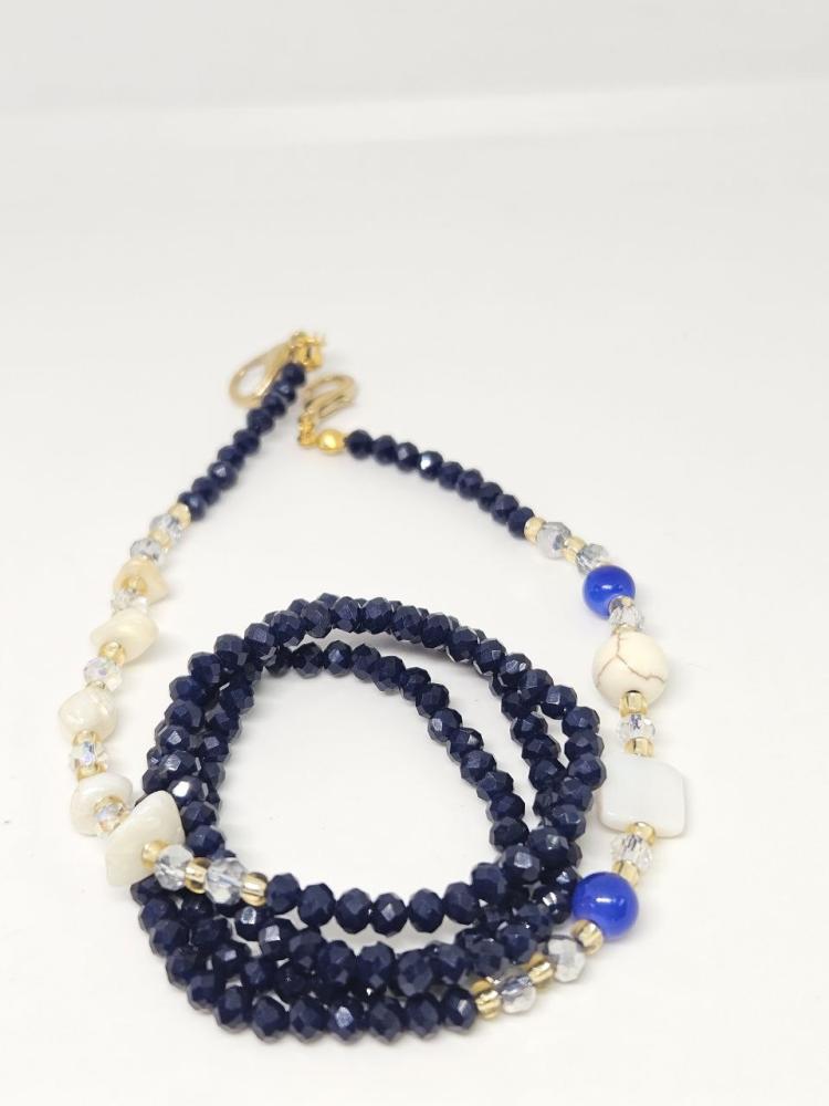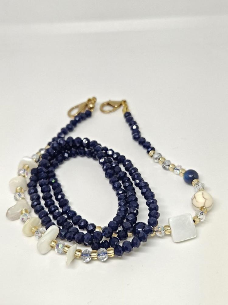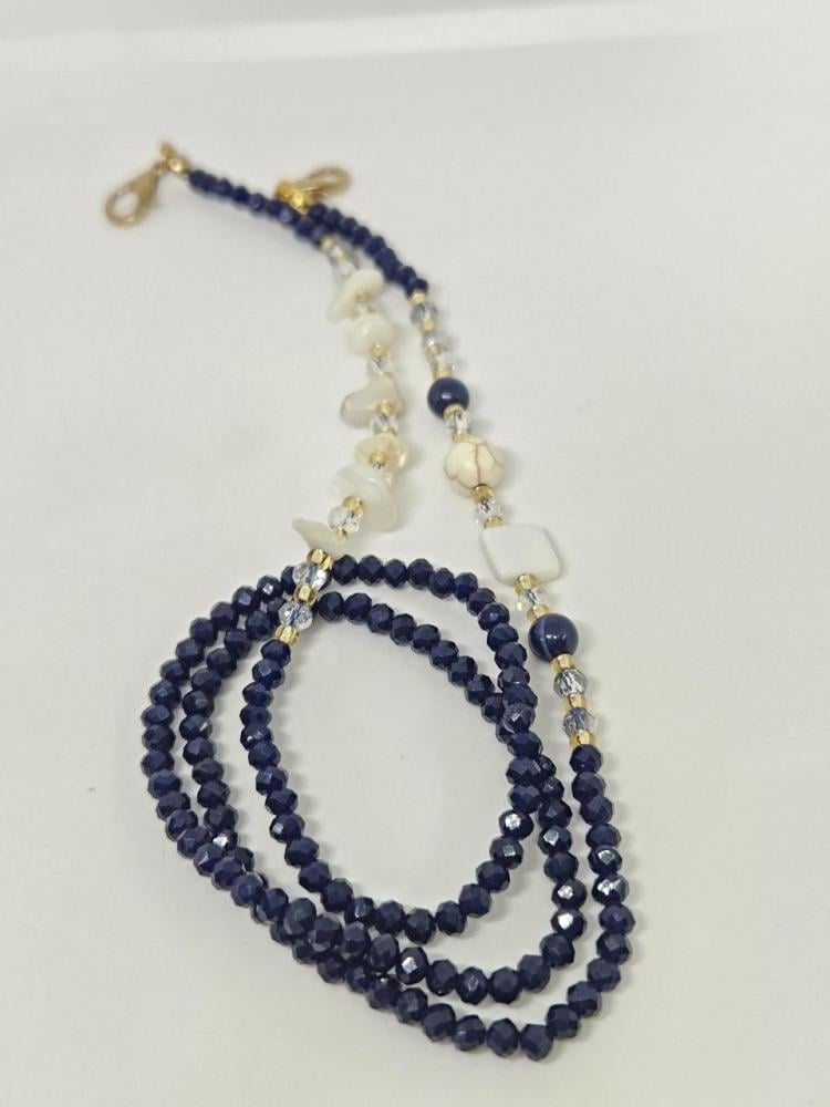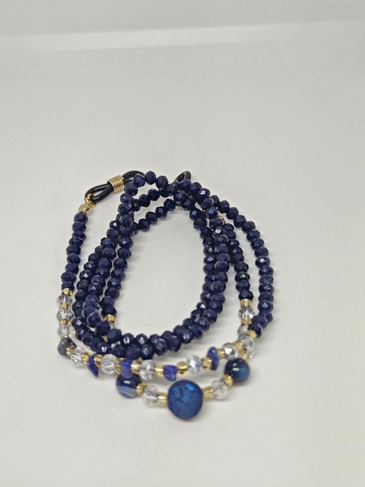 تعليقات للنظاراتمصنوعة من الخرز الزجاجي الذي لا يتغير لونهوالفواصل اللامعة من النحاس المميزوالاحجار من الصدف الطبيعي